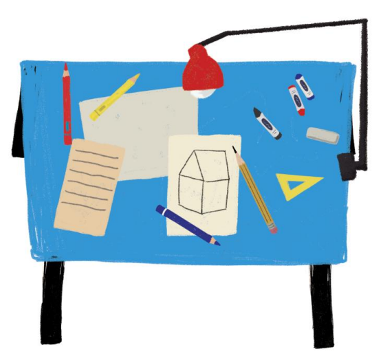 커다란 책상은 작은 손끝에서 우주를 펼치는 넓은 무대입니다.